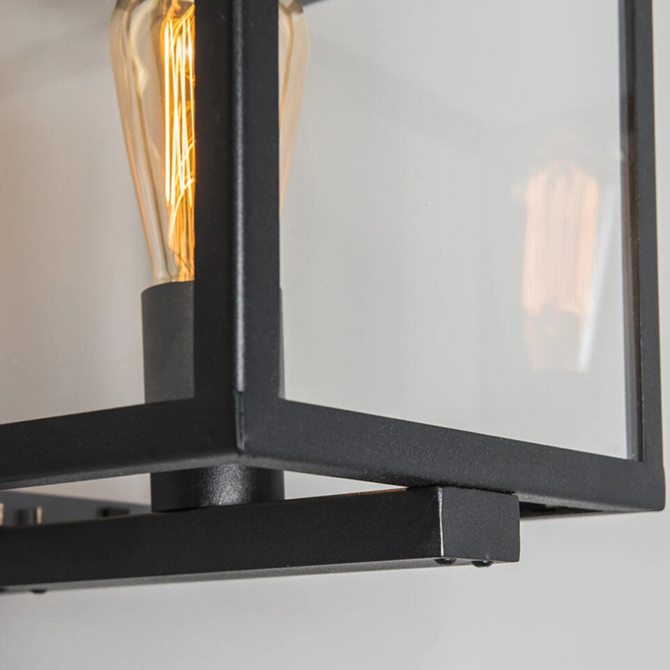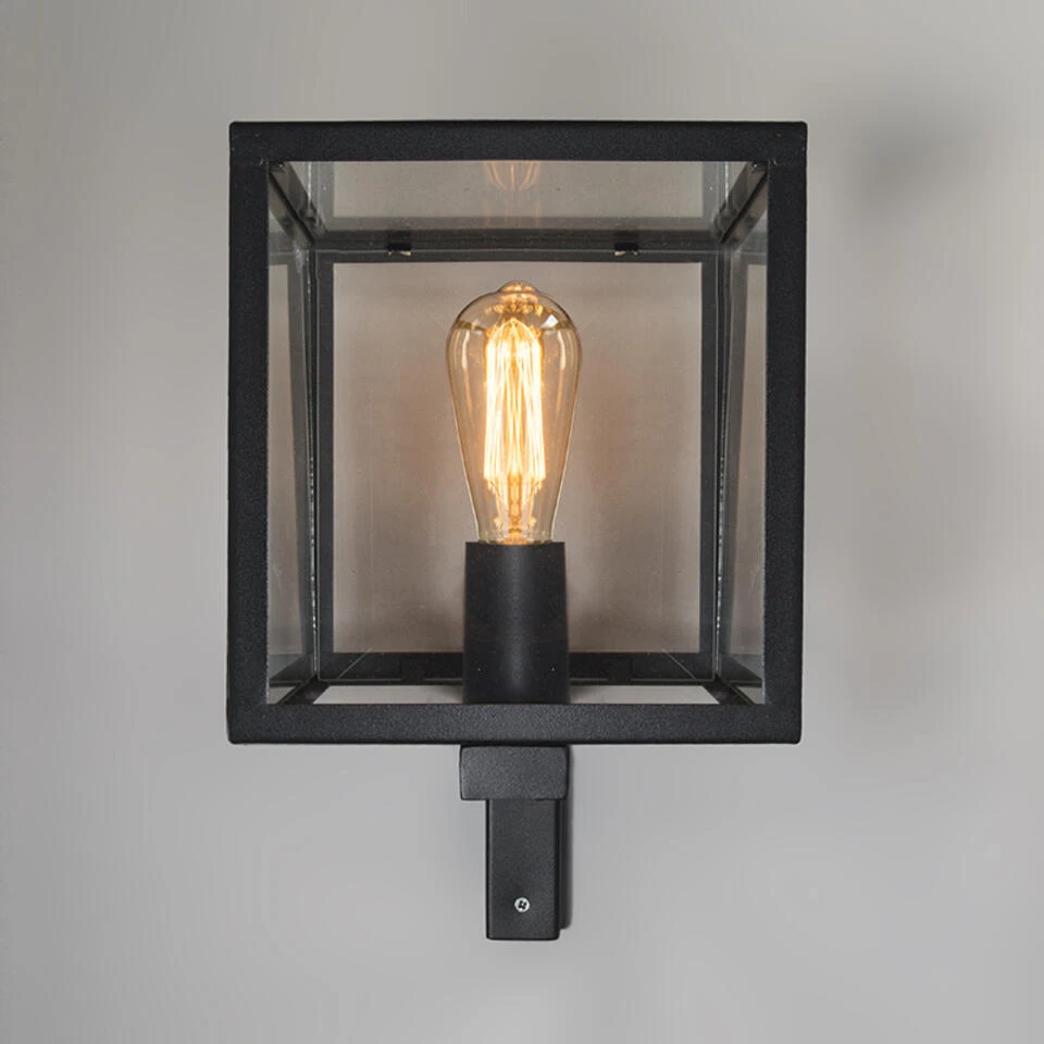QAZQA Industriële Vierkante Buitenwandlamp Zwart IP23 – Rotterdam