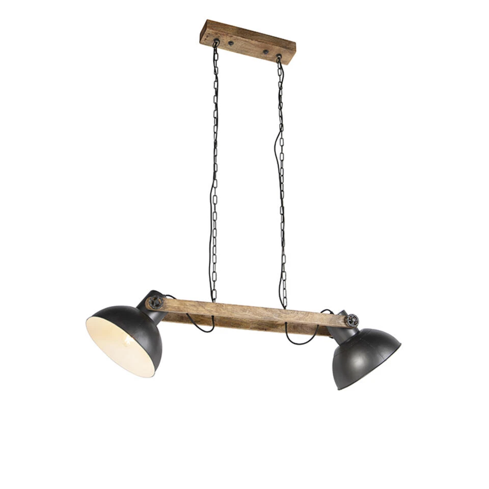 QAZQA Industriële Hanglamp Donkergrijs Met Mango Hout 2-lichts – Mangoes