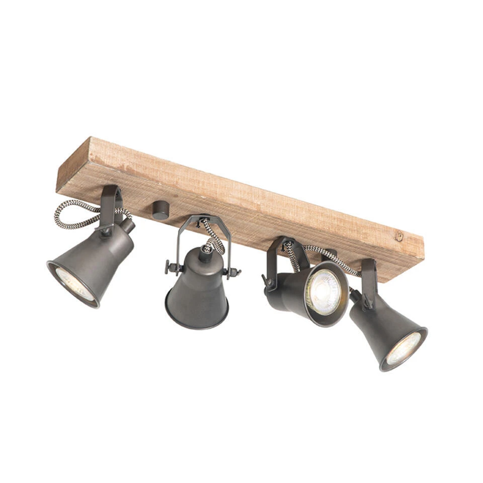 QAZQA Landelijke Spot Zwart Met Hout 4-lichts Verstelbaar – Jelle