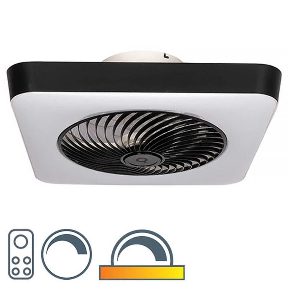 Leuke strakke plafondventilator die bestaat uit een ventilator met daaromheen een vierkante LED lamp. Zeer geschikt voor de slaapkamer of de iets kleinere woonruimtes. Met de meegeleverde remote control kunt u de lamp dimmen en de lichtkleur is ook in te stellen van 3000 tot 6500 Kelvin (van warm wit tot koel wit). Met de remote is het tevens mogelijk om de snelheid van de ventilator in 3 standen te regelen, en heeft het een timer functie.