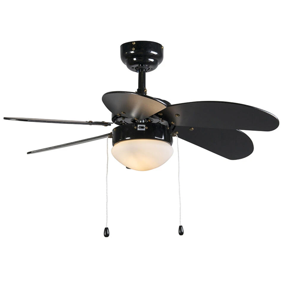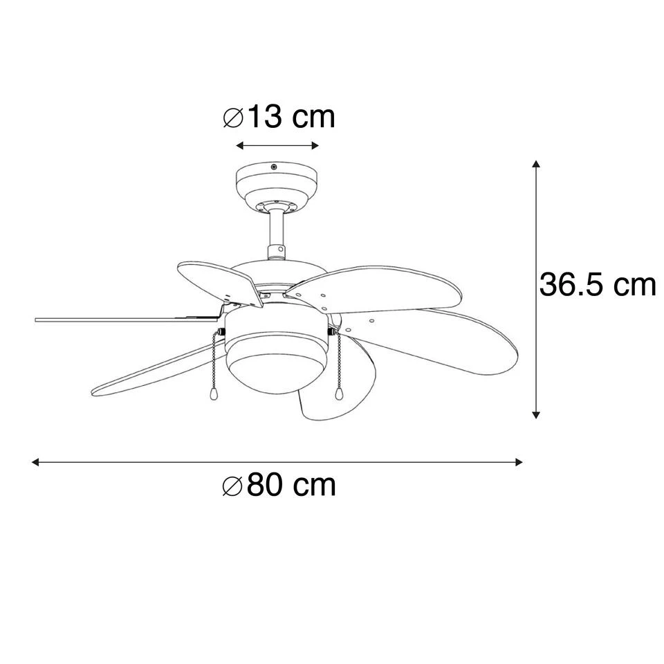 Moderne en stijlvolle multi-functionele plafondventilator met zes bladen afgewerkt in zwart en hout afwerking. Je kiest zelf welke kant de finishing touch maakt! De Fresh 3 is ideaal voor iedere ruimte waar je een koel en verfrissend briesje wilt, past perfect in een moderne inrichting. De ventilator is voorzien van twee kettingen. Een om het licht te regelen en de ander om de ventilator te regelen. Verder heeft deze Fresh 3 plafondventilator een zomerstand voor verkoeling en een winterstand om warme lucht naar beneden te circuleren Met een breedte van 80 cm is deze ventilator breed genoeg om een goede luchtcirculatie in de door jouw gekozen ruimte te garanderen. De montageplaat heeft een diameter van 16 cm. Met 42.4 decibel is deze plafondventilator stil met een AC motor en zorgt ervoor dat je geniet van een ventilator van hoge kwaliteit en energiezuinige verlichting op hetzelfde moment. De perfecte plafondventilator voor jouw slaapkamer, woonkamer of kantoor voor een verfrissende en koele ruimte. Om de Fresh 3 te laten stralen is er nog een lichtbronnetje nodig van maximum 60 Watt (E14 kleine fitting).