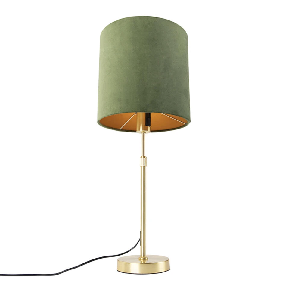 QAZQA Tafellamp Goud/messing Met Velours Kap Groen 25 Cm – Parte
