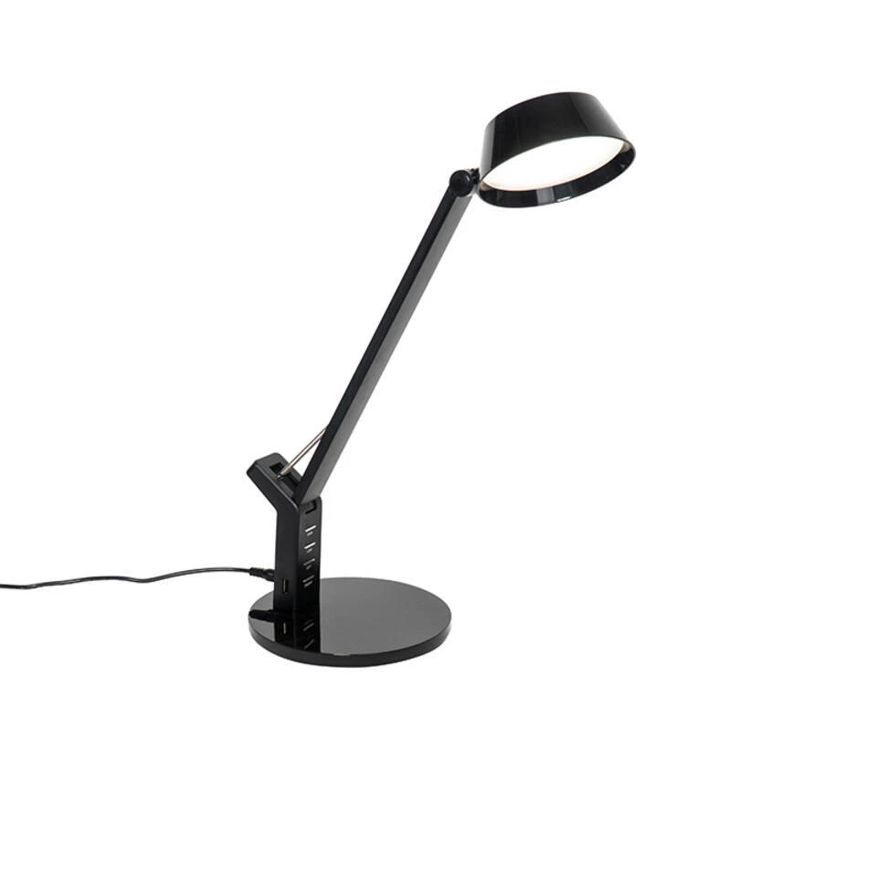 QAZQA Tafellamp Zwart Met Touch Incl. LED Met USB-aansluiting – Edward