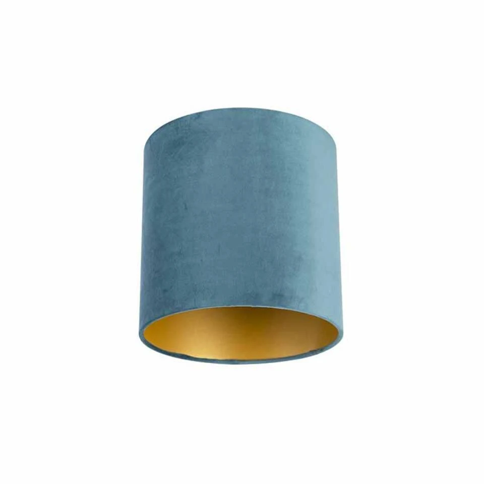 QAZQA Velours Lampenkap Blauw 25/25/25 Met Gouden Binnenkant