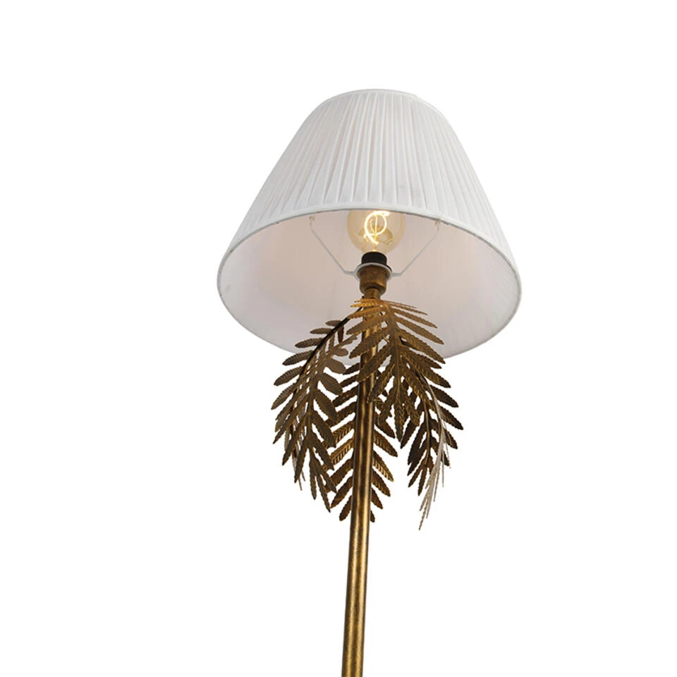 QAZQA Vintage Vloerlamp Goud Met Plisse Kap Wit 45 Cm – Botanica