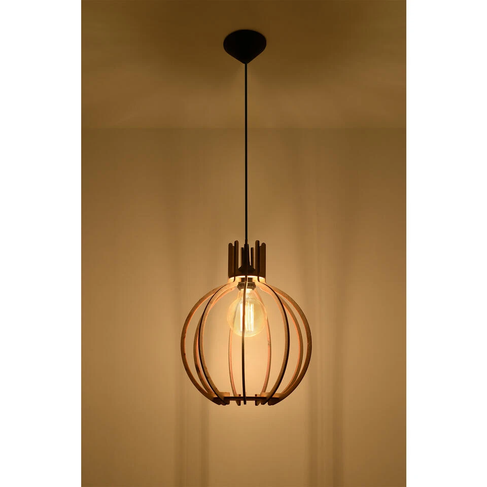 Deze ronde Arancia hanglamp bestaat uit houten latjes die in elkaar geschoven zijn, hierdoor onstaat er een open hanglamp waarbij de lichtbron goed zichtbaar is. Deze hanglamp is geschikt voor een E27 lichtbron van maximaal 10 Watt (Excl.). De hoogte is maximaal 90 cm en simpel inkortbaar, de totale breedte is 30 cm. Dit armatuur is gemaakt van naturel hout en heeft een licht bruine kleur, het snoer is zwart van kleur. 5 jaar garantie.