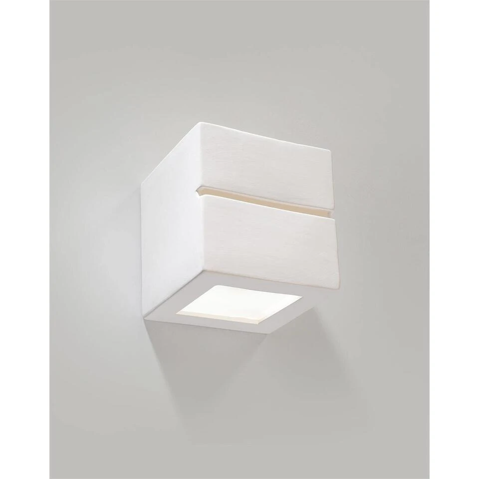 Deze moderne strakke Leo Line wandlamp is geschikt voor 1x E27 lichtbron van maximaal 15 Watt (Excl.). Het aparte is dat deze wandlamp “up en down” licht geeft, en dat er licht ontsnapt door de horizontale streep. De hoogte is 14 cm en de breedte is 14 cm, de totale diepte is ook 14 cm. Deze strakke wandlamp is gemaakt van wit gips (overschilderbaar) en wordt geleverd zonder aansluitsnoer. Aan de onderzijde bevindt zich een mat glasplaatje. 5 jaar garantie.