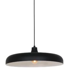 De totale hoogte van dit armatuur is 170 cm en de kap heeft een diameter van 50 cm, de hoogte van de kap is 16 cm. Kleur: zwart. Geschikt voor een (LED) lichtbron van maximaal 60 Watt E27.