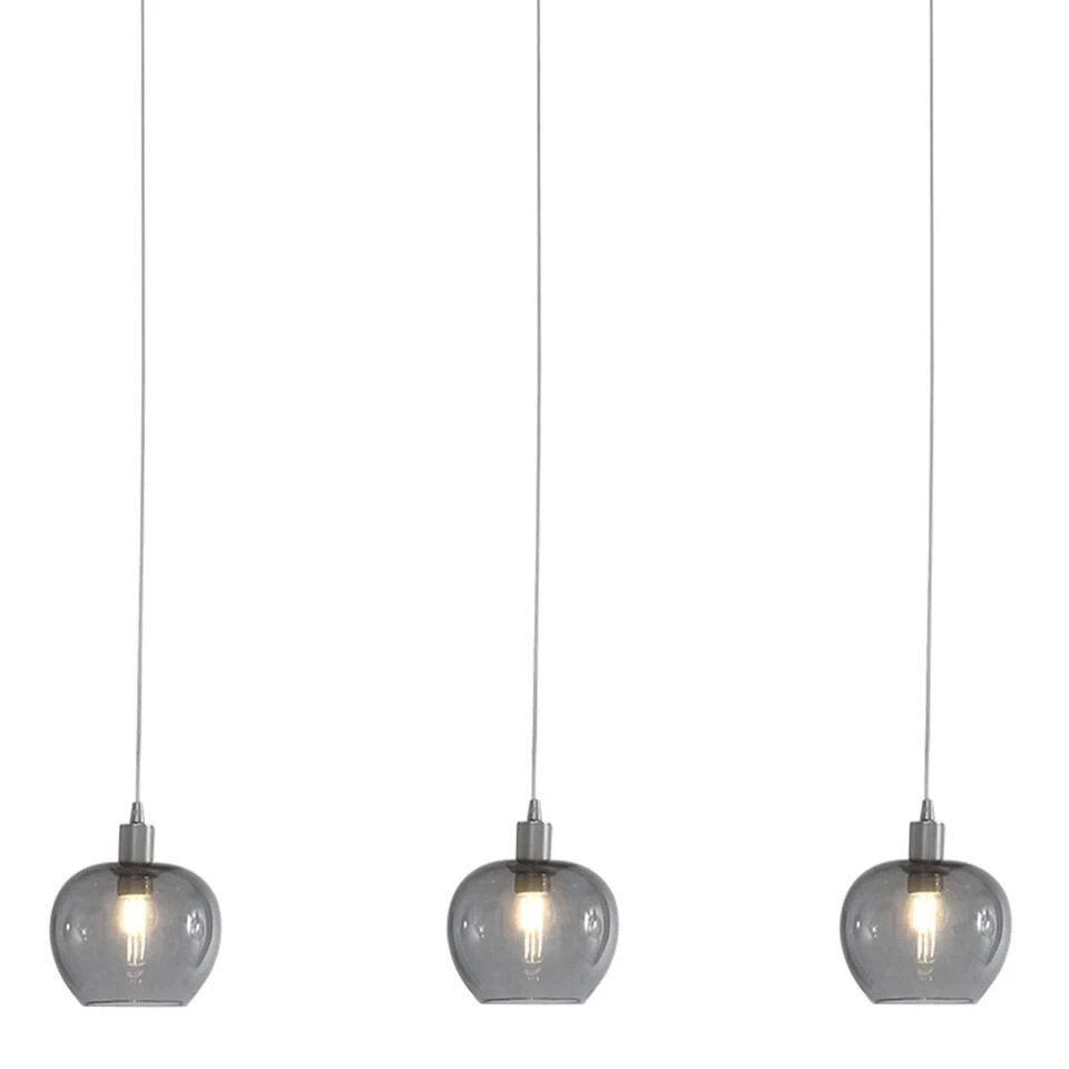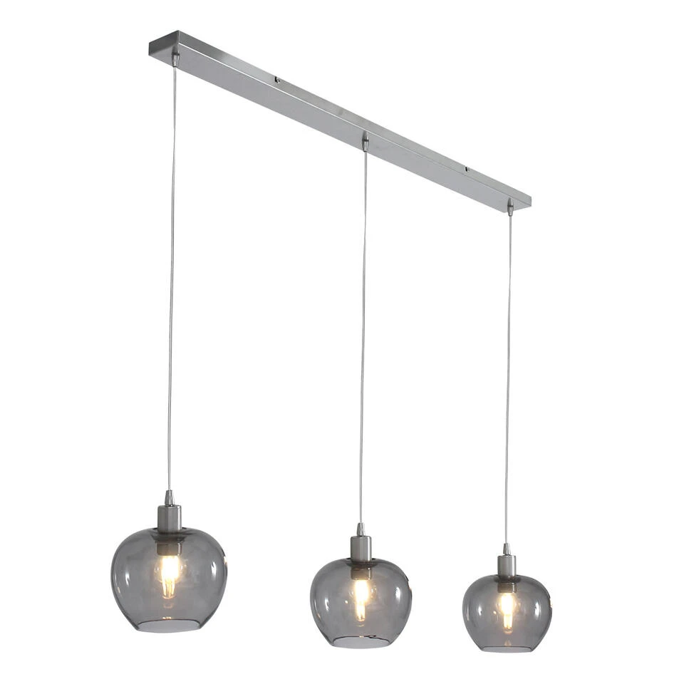 3-lichts hanglamp uit de Lotus serie. Door het geborstelde staal en de getinte glasbollen krijgt de lamp een modern uiterlijk. Alle bollen zijn voorzien van een E14 (kleine) fitting en geschikt voor alle soorten lichtbronnen tot 40 Watt. De lengte van de lamp is 100 centimeter, tijdens monteren is de lamp in hoogte verstelbaar tot maximaal 150 centimeter, de minimale hoogte is 25 centimeter. De diameter van de glasbol is 16 centimeter en de hoogte is 13 centimeter. De lamp is dimbaar middels een externe dimmer en de bijbehorende lichtbron. Word exclusief lichtbron geleverd.