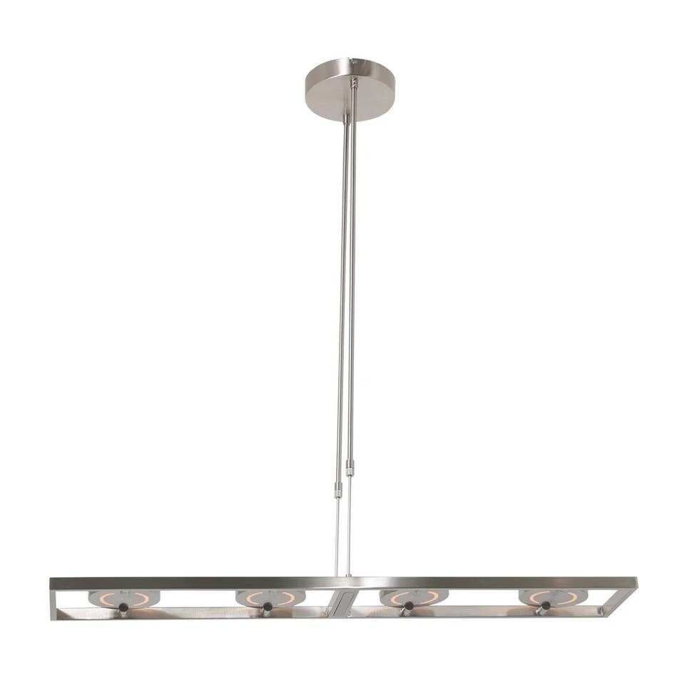 De hanglamp heeft een lengte van 120 cm, waardoor hij perfect is voor boven een langwerpige eettafel of bij een kookeiland. De hoogte van de lamp is eenvoudig instelbaar van 82 cm tot 122 cm, zodat je de ideale hoogte kunt kiezen voor jouw ruimte. Met zijn 4x 10 watt LED-lampen geeft deze hanglamp een heldere verlichting van max. 4000 lumen, waardoor hij perfect is voor functionele verlichting in verschillende situaties. Of je nu een gezellige sfeer wilt creëren tijdens een etentje of helder licht nodig hebt tijdens het werken, deze lamp biedt de juiste hoeveelheid verlichting.