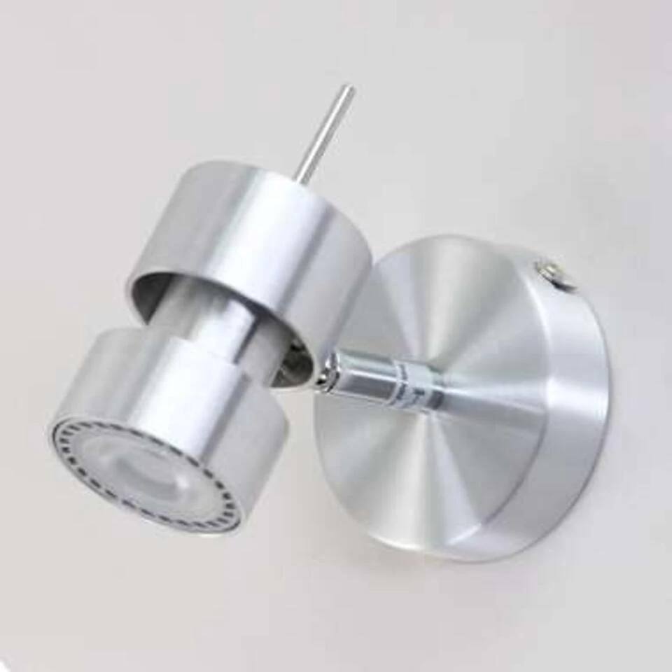 Deze 1 lichts LED wand of plafond spot heeft een achterplaat met een doorsnede van 8,5 cm. De hoogte is 12 cm en de koker heeft een dorsnede van 5,5 cm. Kleur: Aluminium.