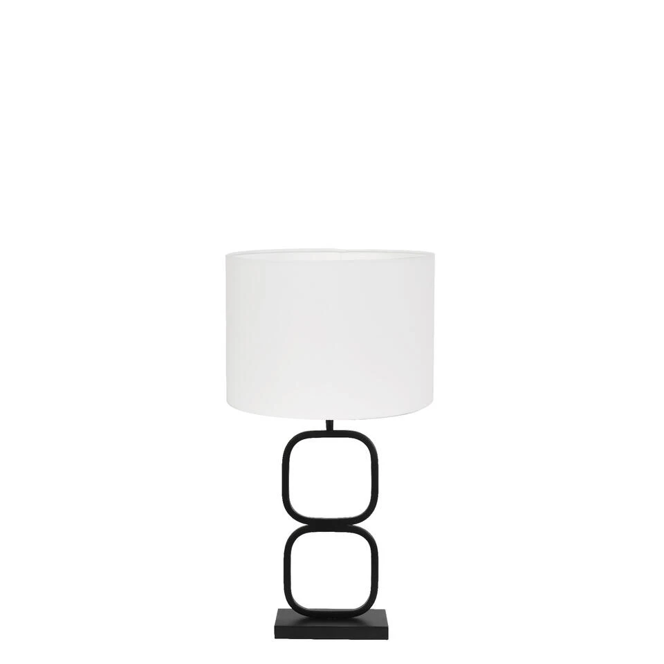 Op zoek naar de perfecte tafellamp inclusief lampenkap? De Lutika is een moderne zwarte lampvoet van metaal en wordt geleverd inclusief cilinder lampenkap Polycotton, Dit is een witte lampenkap, onder andere gemaakt van katoen en linnen, De mat zwarte lampvoet past in ieder interieur en is daarom een gegarandeerd tijdloze tafellamp in de woonkamer of als nachtlampje in de slaapkamer, Doordat de voet inclusief kap wordt geleverd, hoef jij je geen zorgen te maken of de verhoudingen wel kloppen, De kap past perfect op de unieke lampvoet met 2 metalen vierkanten, De totale afmeting van de tafellamp is Ø30×67,5 cm,