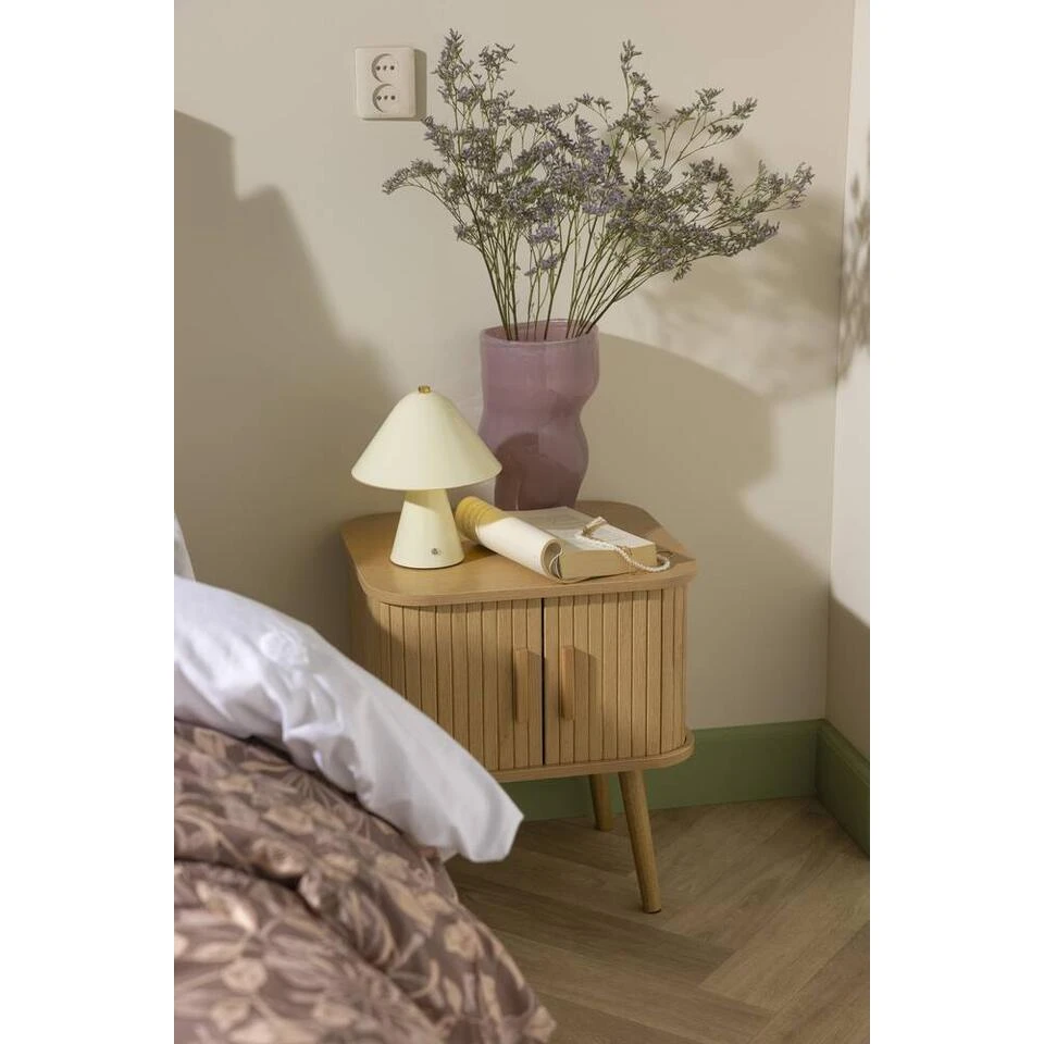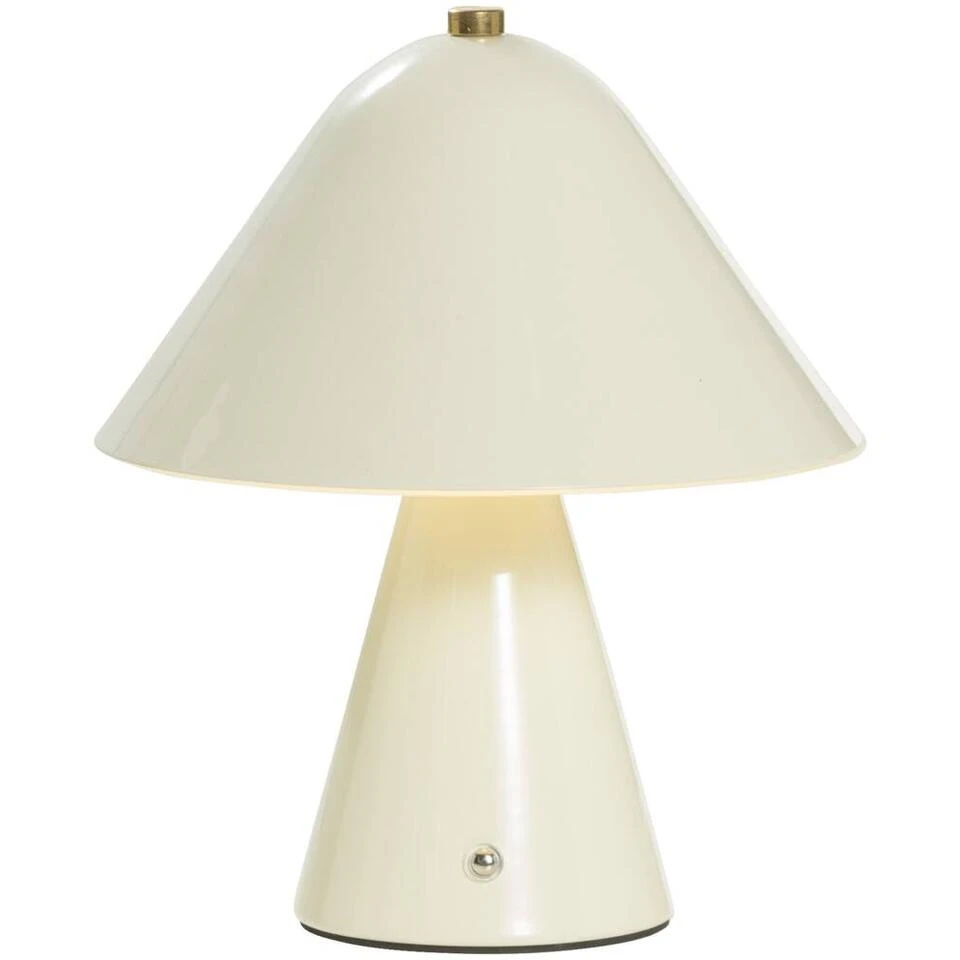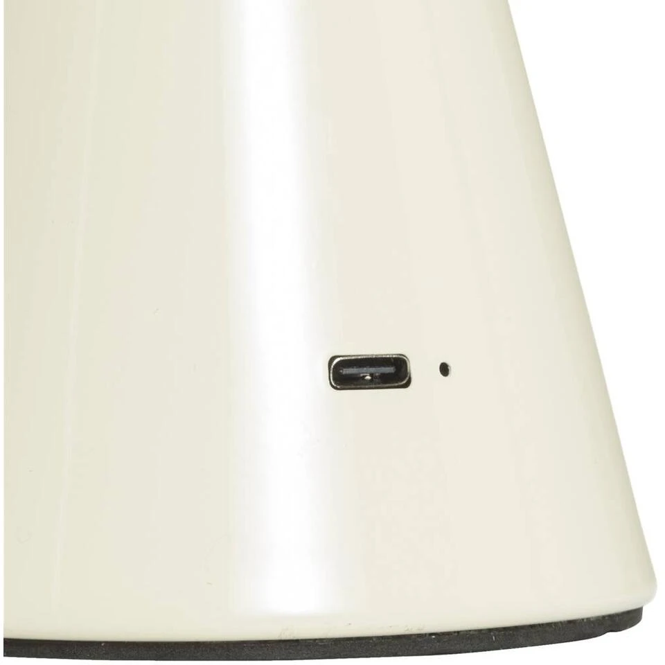 Tafellamp Nami is gemaakt van metaal in de kleur off-white. De lamp heeft een retro uitstraling met een moderne twist. Deze bureaulamp heeft een hoogte van 26,5 cm en een diameter van 19,5 cm. Middels een USB is de lamp zelfs oplaadbaar.
