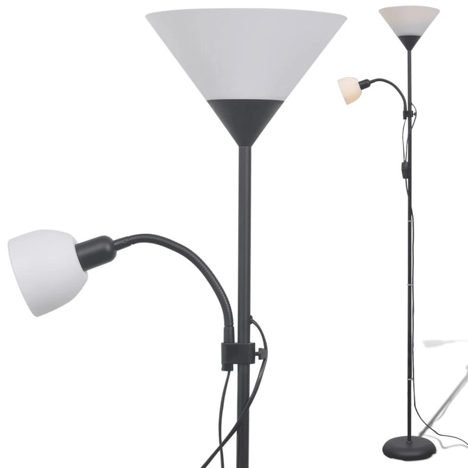 Deze vloerlamp met dubbele AAN/UIT-schakelaars is zeer handig in gebruik en is ideaal voor elke ruimte die een verlichtingsoplossing nodig heeft. Deze lamp bestaat uit één naar boven schijnende lamp en één leeslamp, die tegelijk twee verlichtingsfuncties vervullen.