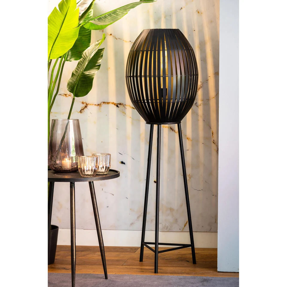 Deze ovale vloerlamp zal ongetwijfeld opvallen in jouw interieur! De ovale vorm in combinatie met het metaal maakt deze lamp zo uniek. De Kyomi vloerlamp rust op drie poten en heeft een metalen design in een mat zwarte kleur. Wanneer je de lamp aanzet ontstaat er door de platte metaaldelen een mooie tekening van patronen op de muur. De bovenkant van de lamp is open waardoor de lamp genoeg licht geeft. Ook wanneer de lamp uit staat, is deze lamp prachtig. Deze handgemaakte vloerlamp is van het merk Light & Living en heeft een afmeting van Ø42×137 cm.
