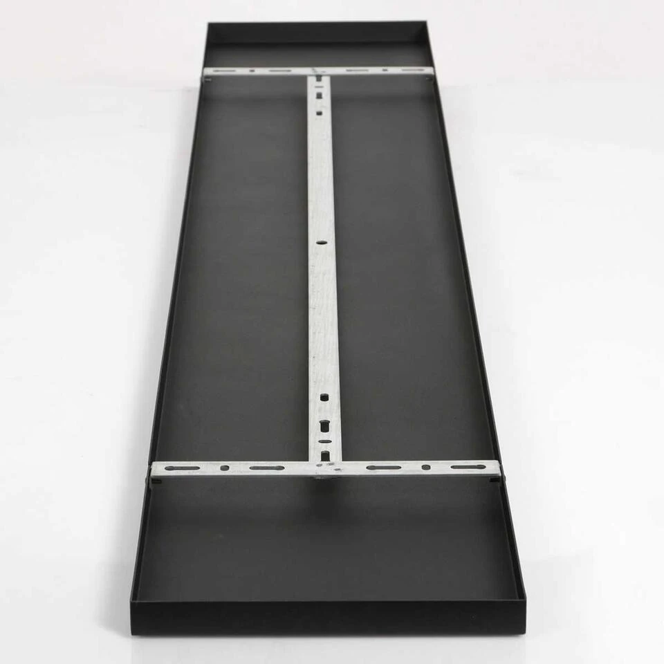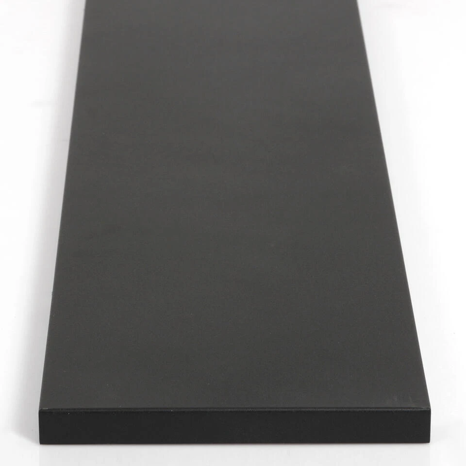 Er worden geen trekontlasters meegeleverd (dopjes met draadeind en moer om het snoer mee vast te zetten), deze zijn wel apart mee te bestellen. Ook wordt deze plaat geleverd zonder snoer. Deze balk is 140 cm lang en 25 cm breed, de hoogte is 2,5 cm. Kleur: Mat zwart.