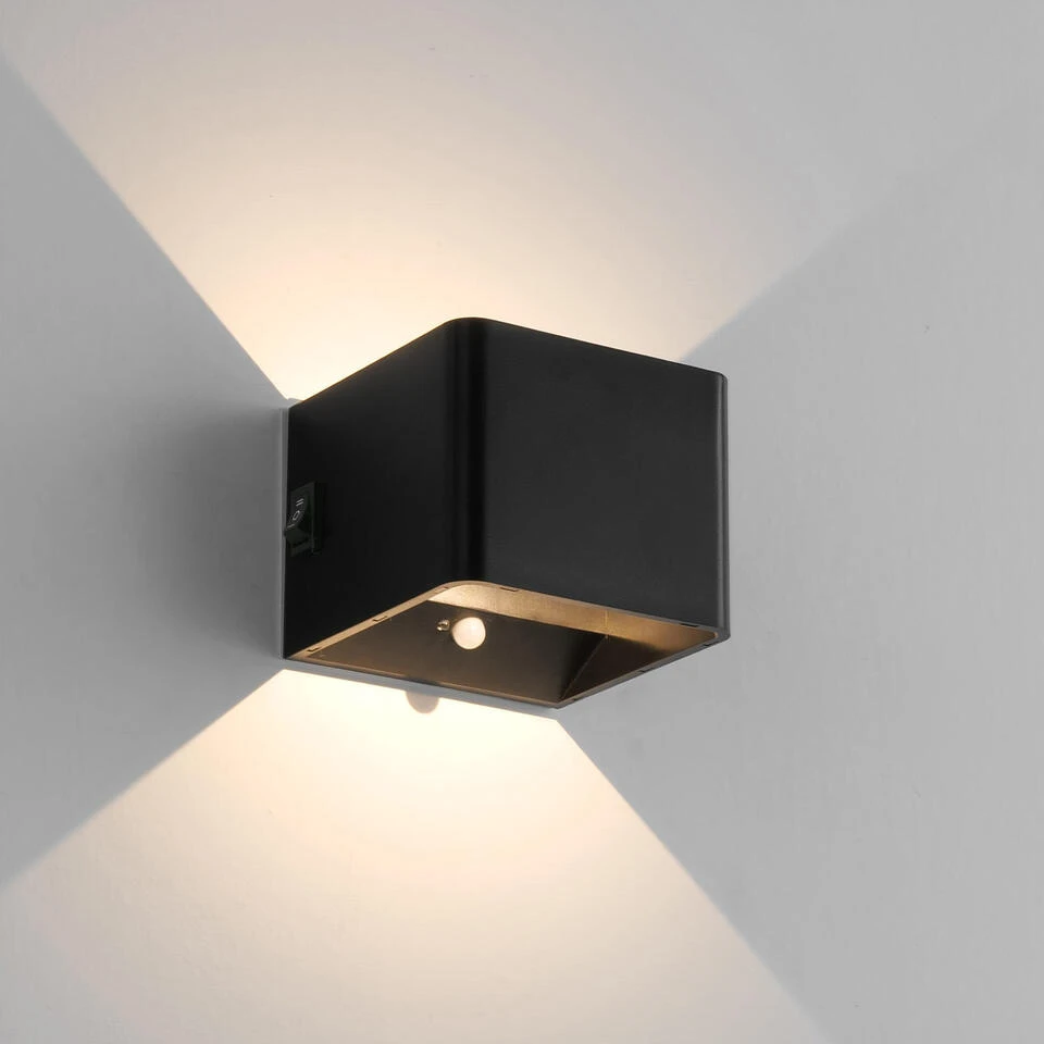 Met de 3 standen schakelaar op het armatuur is deze wandlamp in 3 standen te regelen: sensor stand, altijd aan stand en de uit stand. In de sensor stand zal de lamp ongeveer 40-50 seconden branden als er beweging gedetecteerd wordt. Deze stand werkt alleen als het donker is. Het opladen duurt ongeveer 4-5 uur en de batterij heeft een capaciteit van 2000 mAh. Dit armatuur zal ongeveer 12 uur kunnen branden zonder op te laden bij de continu stand, en zal in de sensor stand een paar maanden kunnen werken afhankelijk hoe vaak er iemand wordt gedetecteerd. De hoogte is 8 cm en de breedte en de diepte is 10 cm. Kleur: Zwart.
